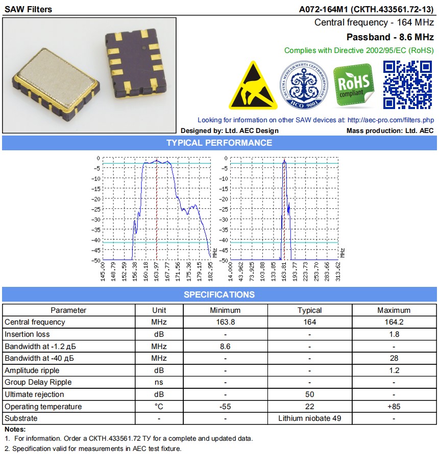 Central frequency | MHz | 163.8 | 164 | 164.2 |