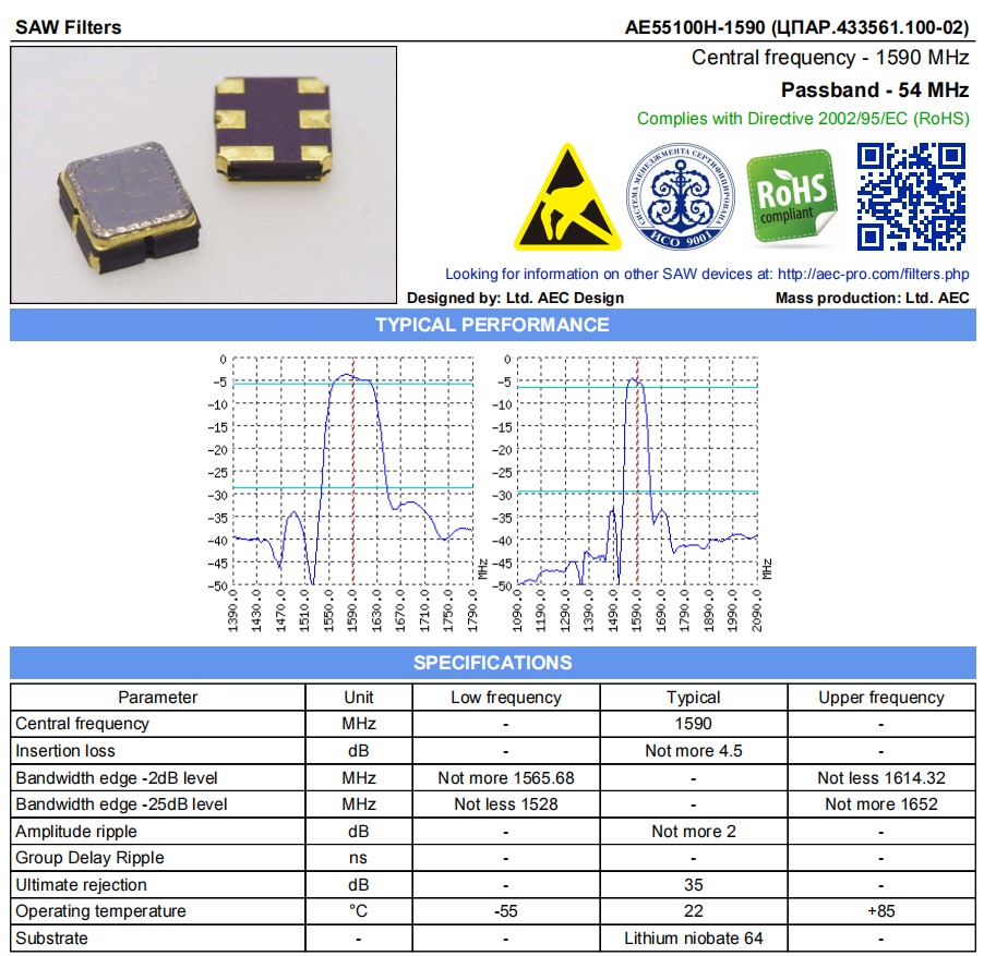 Bandwidth edge -2dB level | MHz | Not more 1565.68 | - | Not less 1614.32 | ||||||||||||||||||||