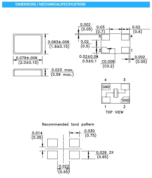 艾爾2016mm晶振,ELM11-16.000MHz-D7X-T,智能穿戴設備晶振,尺寸圖