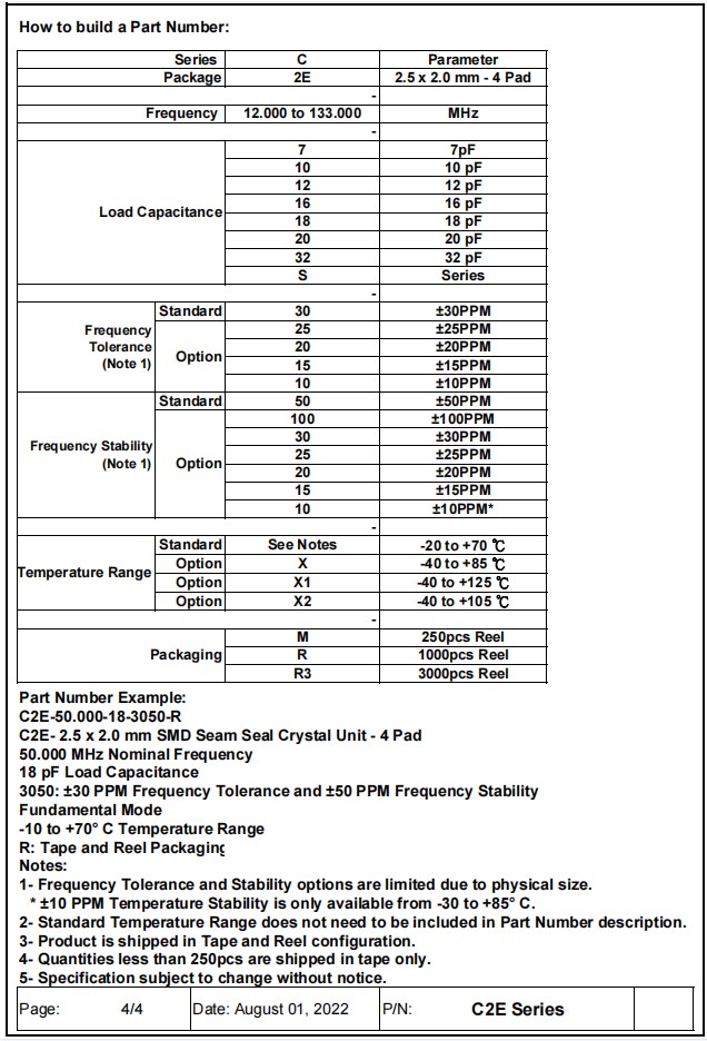 C2E-18.080-12-50100-X1-R | Aker晶振 | Crystal 18.08MHz ±50ppm (Tol) ±100ppm (Stability) 12pF FUND 100Ohm Automotive 4-Pin SMD T/R |