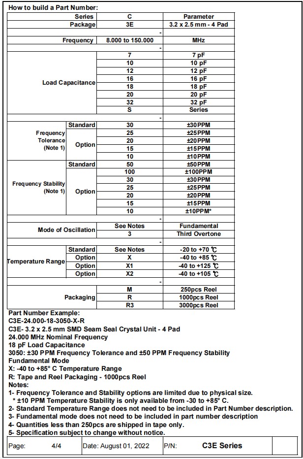 C3E-32.000-10-1530-X-R | Aker晶振 | Crystal 32MHz ±15ppm (Tol) ±30ppm (Stability) 10pF FUND 50Ohm 4-Pin SMD T/R |