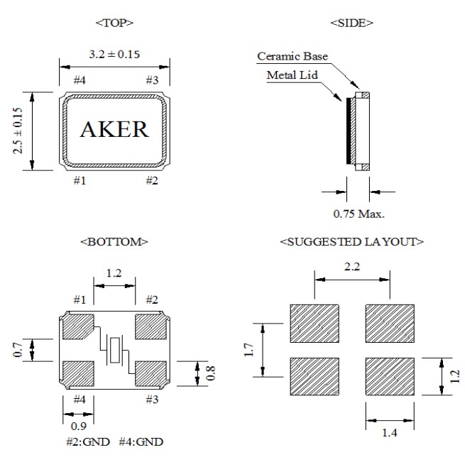 AKER晶體諧振器,C3E-27.000-10-1530-X-R,車載控制器6G晶振,C3E-18.432-10-1530-X-R,藍牙晶振,尺寸圖