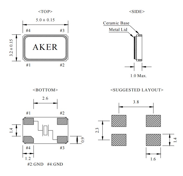 AKER小體積晶振,C5S-40.000-18-3050-X-R,無線網絡晶振,尺寸圖
