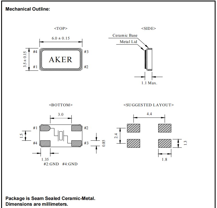 CAA-4.000-18-3050-X-R | Aker安碁 | CRYSTAL 4MHZ 18PF SMD | CAA | 4 MHz |