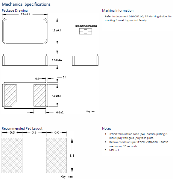 CTS西迪斯TF20超小型晶振,TF203P32K7680R無線模塊晶振,TF205P32K7680,可穿戴設備晶振,尺寸圖