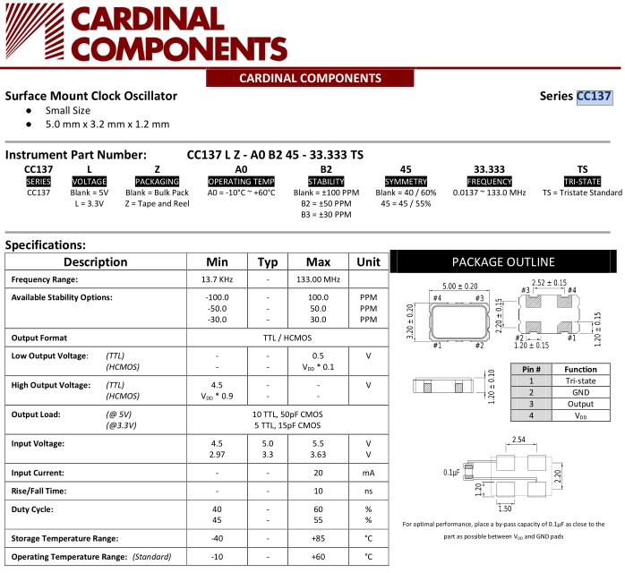 Cardinal晶振,CC137晶振,CC137LZ-A0B245-16.000TS晶振,5032mm體積的石英晶體振蕩器,有源晶振,該產(chǎn)品可驅(qū)動(dòng)2.5V的溫補(bǔ)晶振,壓控晶振,VC-TCXO晶體振蕩器產(chǎn)品,電源電壓的低電耗型,編帶包裝方式,可對(duì)應(yīng)自動(dòng)高速貼片機(jī)自動(dòng)焊接,及IR回流焊接(無(wú)鉛對(duì)應(yīng)),為無(wú)鉛產(chǎn)品,超小型,質(zhì)地輕.產(chǎn)品被廣泛應(yīng)用到集成電路,程控交換系統(tǒng),無(wú)線發(fā)射基站.