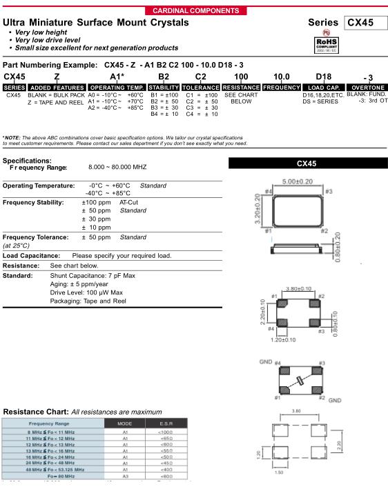 Cardinal晶振,CX45晶振,CX45-Z-A1B2C2100-10.0D183晶振,智能手機晶振,產品具有高精度超小型的表面貼片型石英晶體振蕩器,最適用于移動通信終端的基準時鐘等移動通信領域.比如智能手機,無線通信,衛星導航,平臺基站等較高端的數碼產品,晶振本身小型,薄型具備各類移動通信的基準時鐘源用頻率,貼片晶振具有優良的電氣特性,耐環境性能適用于移動通信領域,滿足無鉛焊接的高溫回流溫度曲線要求.