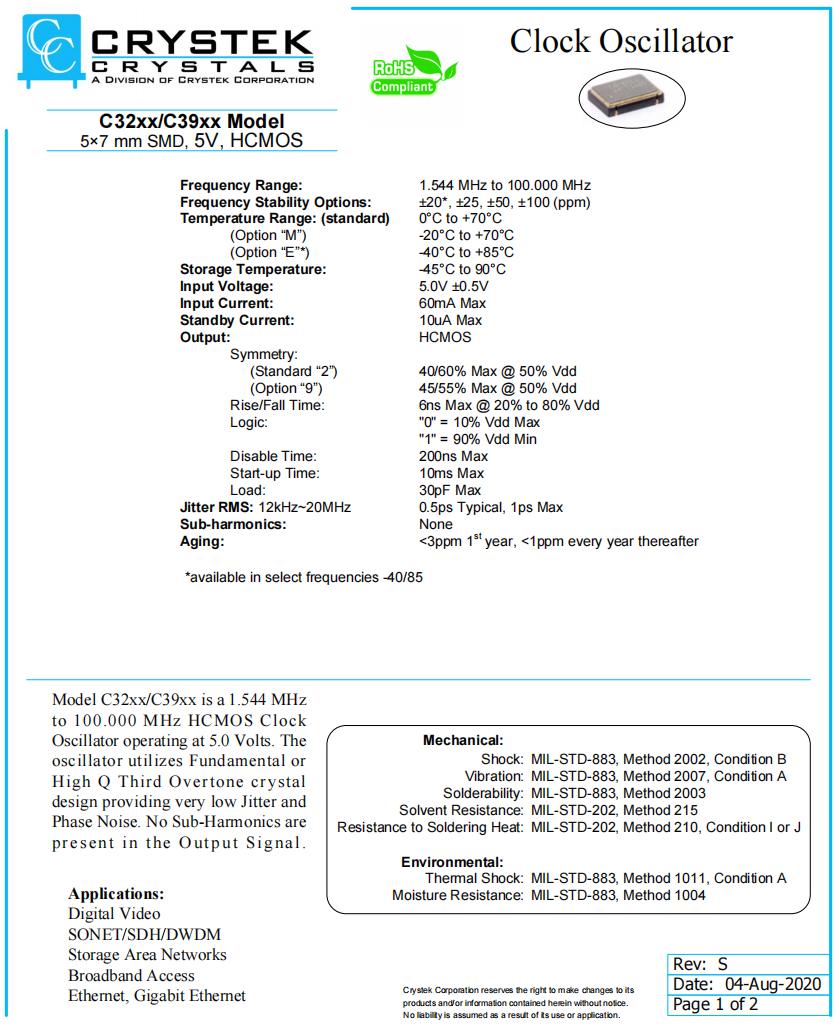 C3290-80.000 | Crystek晶振 | C3290 | 80MHz | ±100ppm |