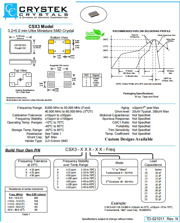 Crystek進口晶振,CSX3-AB1-18-19.680,石英晶體諧振器,CSX3-BE3-12-24.000,6G電信晶振,參數(shù)表
