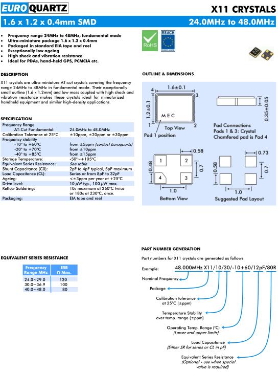 AT-Cut Fundamental: | 24.0MHz to 48.0MHz | |