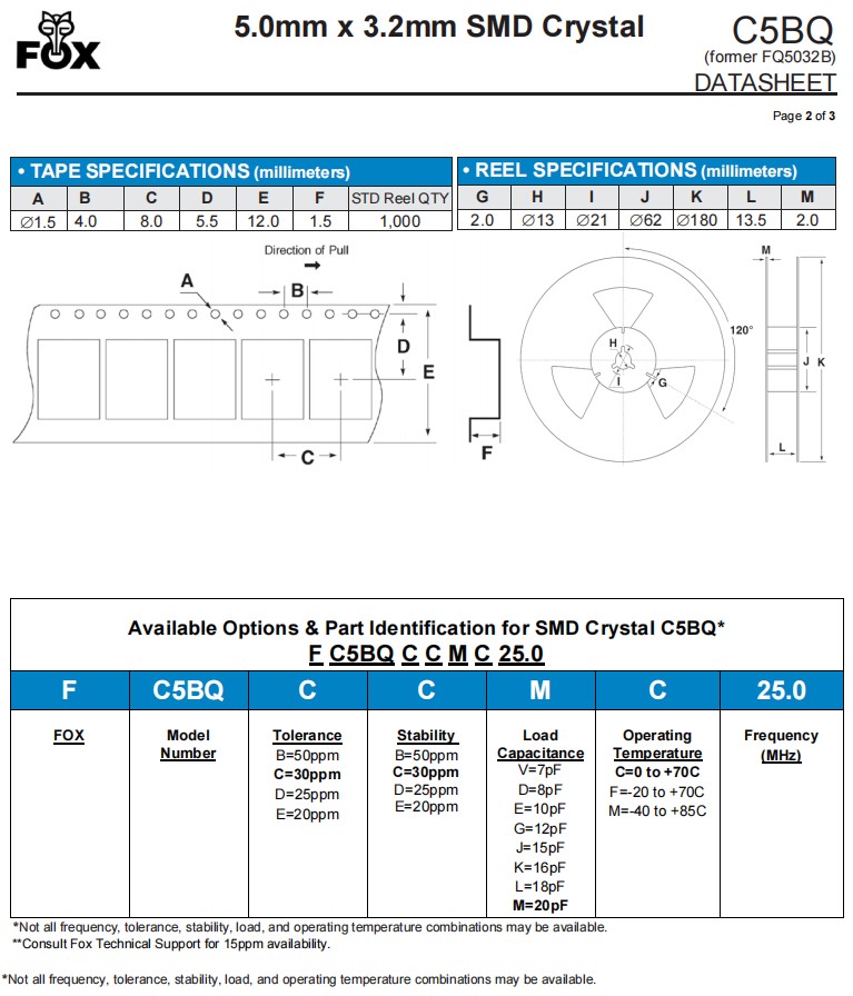 FQ5032B-25.000 | Fox晶振 | C5BQ | 25MHz | ±30ppm |