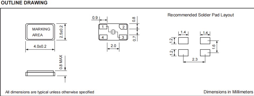 ●高密度表面安裝的行業標準封裝,石英貼片晶振