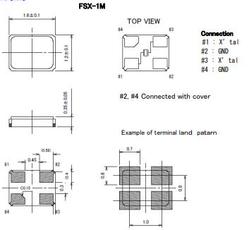 在一個不同擴張系數電路板(環氧玻璃)上焊接陶瓷封裝石英晶振時,在溫度長時間重復變化時可能導致端子焊接部分發生斷裂,請事先檢查焊接特性。Fujicom晶振,FSX-1M晶振,SMD水晶振動子.