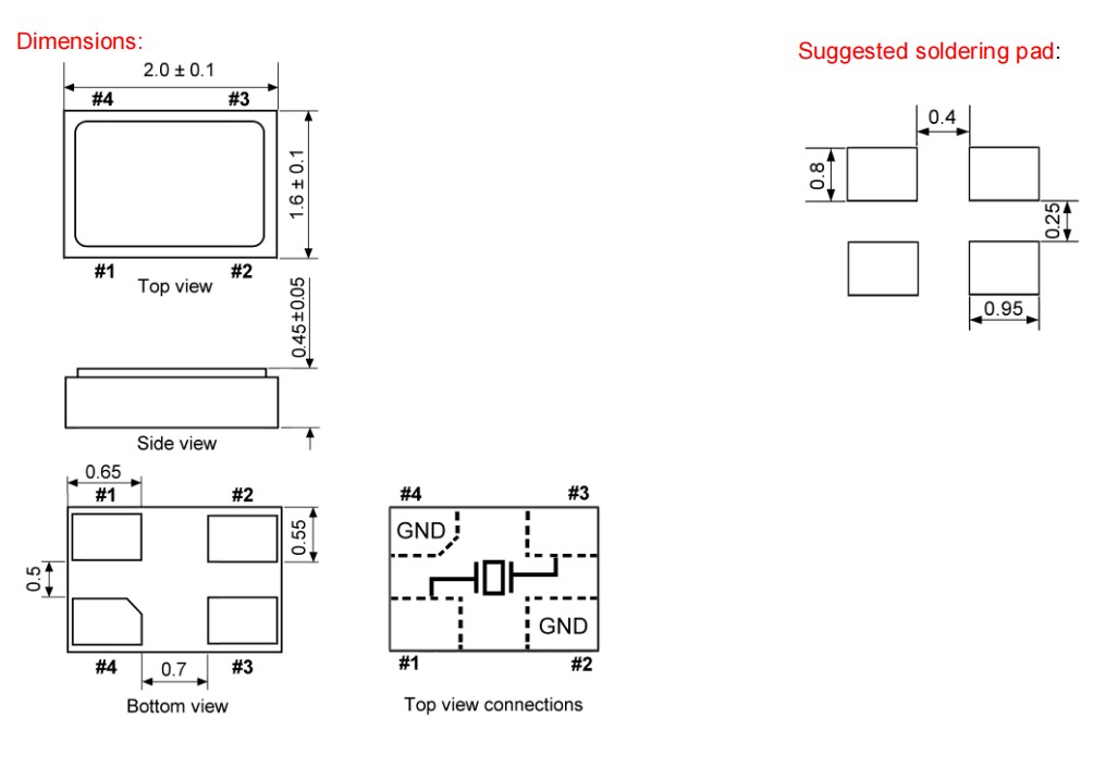 KX-5T,12.85547,2016mm,26MHz,Geyer四腳貼片晶振,12.85521,無源晶振,尺寸圖