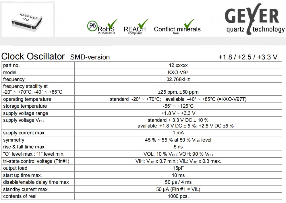 12.95104 | Geyer晶振 | XTAL OSC XO 32.7680KHZ SMD | KXO-V96-18 | 32.768 kHz |