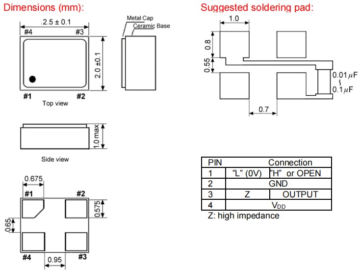 KXO-V95,12.95538,27.12MHz,2520mm,Geyer時鐘振蕩器,SMD晶振,無線藍牙晶振,尺寸圖