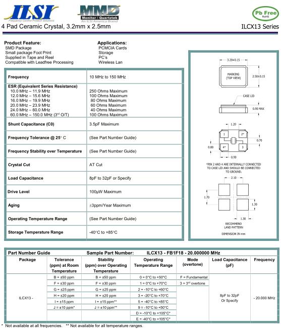 ILSI晶振,ILCX13晶振,ILCX13-FB1F18-20.000000MHz晶振,3225mm體積貼片晶振適用于汽車電子領(lǐng)域的表面貼片型石英晶振,本產(chǎn)品已被確定的高信賴性最適合用于汽車電子部件,晶體在極端嚴(yán)酷的環(huán)境條件下也能發(fā)揮穩(wěn)定的起振特性,晶振本身具有耐熱,耐振,耐沖擊等優(yōu)良的耐環(huán)境特性,滿足無鉛焊接的高溫回流溫度曲線要求,符合AEC-Q200標(biāo)準(zhǔn).