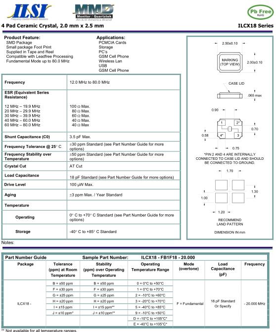 Load Capacitance | 18 pF Standard (see Part Number Guide for more options) |