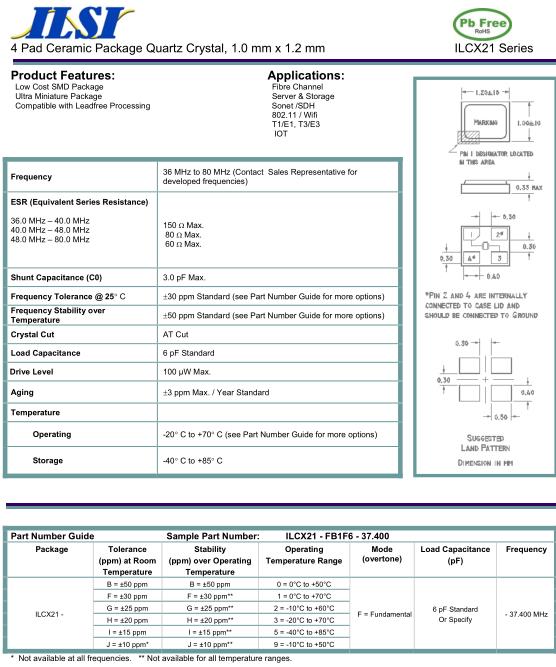 ILSI晶振,ILCX21晶振,ILCX21-FB1F6-37.400晶振,貼片晶振本身體積小,超薄型石英晶體振蕩器,特別適用于有目前高速發(fā)展的高端電子數(shù)碼產(chǎn)品,因為晶振本身小型化需求的市場領(lǐng)域,小型,薄型是對應(yīng)陶瓷振蕩器(偏差大)和普通的石英晶體振蕩器(偏差小)的中間領(lǐng)域的一種性價比較出色的產(chǎn)品.產(chǎn)品廣泛用于筆記本電腦,無線電話,衛(wèi)星導(dǎo)航SSD,USB,Blu-ray等用途,符合無鉛焊接的高溫回流焊曲線特性.