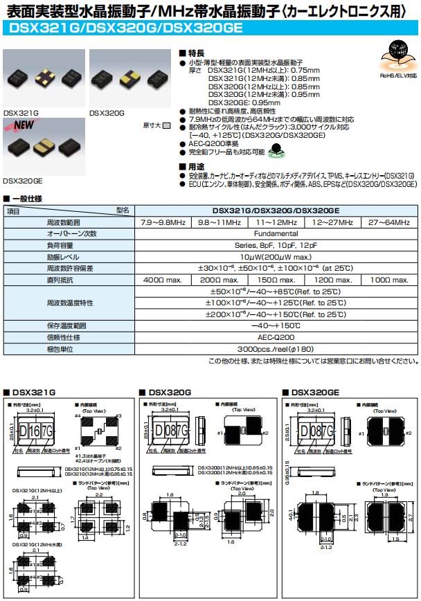 周波數溫度特性 | ±100×10-6/ー40~+125℃(Ref. to 25℃) | ||||