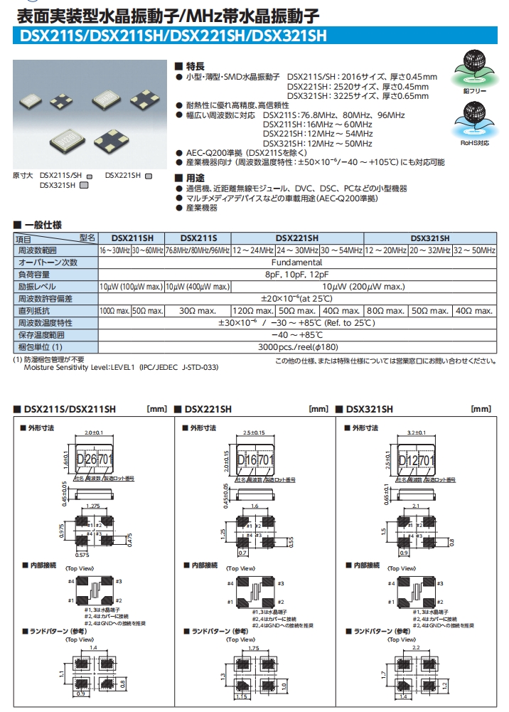 大真空KDS株式會(huì)社,1ZZNAE26000AB0J,DSX211SH小型設(shè)備晶振 參數(shù)表