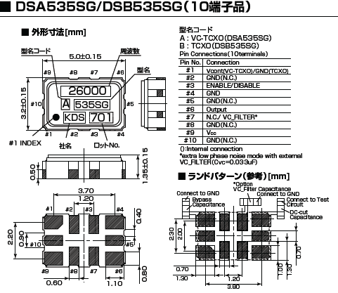 DSB535SG溫補晶振,KDS晶振,5032晶振該體積產(chǎn)品最適合于GPS,以及衛(wèi)星通訊系統(tǒng),智能電話等多用途的高穩(wěn)定的頻率溫度特性晶振.為對應低電源電壓的產(chǎn)品.(DC+1.8V ± 0.1V to +2.9V ± 0.1V 對應IC可能) 高度:最高0.8 mm,體積:0.0022 cm3,重量:0.008 g,超小型,輕型.低消耗電流,表面貼片型產(chǎn)品.