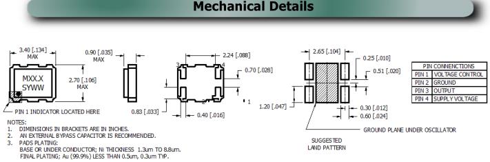 Supply Voltage | 2.50VDC to +2.80VDC | +3.00VDC to 3.30VDC |
