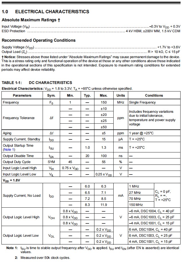 DSC1003AI1-050.0000 | Microchip晶振 | DSC1003 | 50MHz | 1.8 ~ 3.3V |