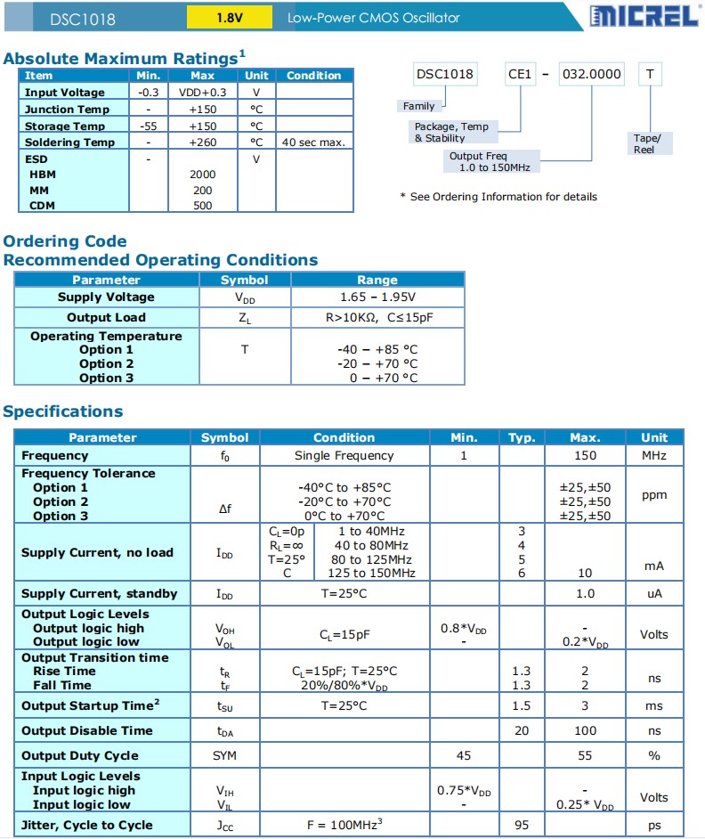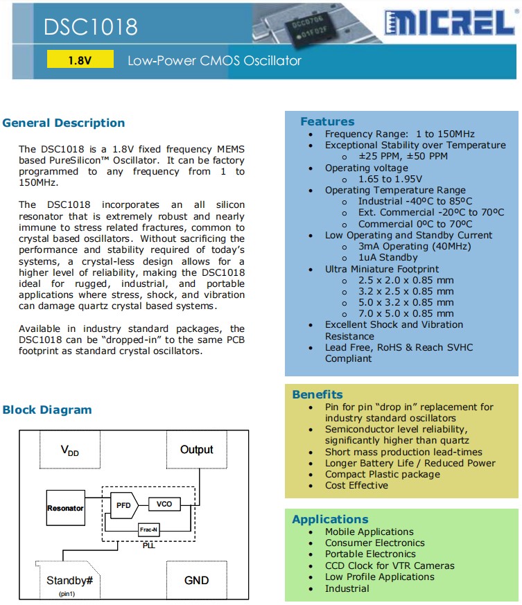 DSC1018晶振特點: