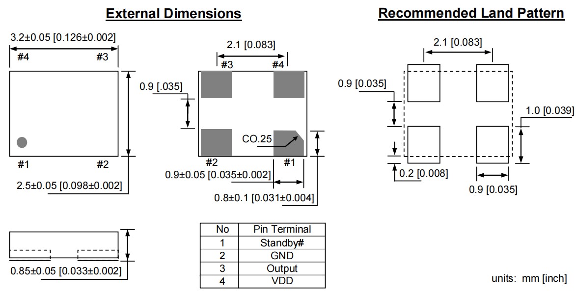 超微型足跡:2.5x2.0x0.85毫米,3.2x2.5x0.85毫米,5.0x3.2x0.85毫米,7.0x5.0x0.85毫米