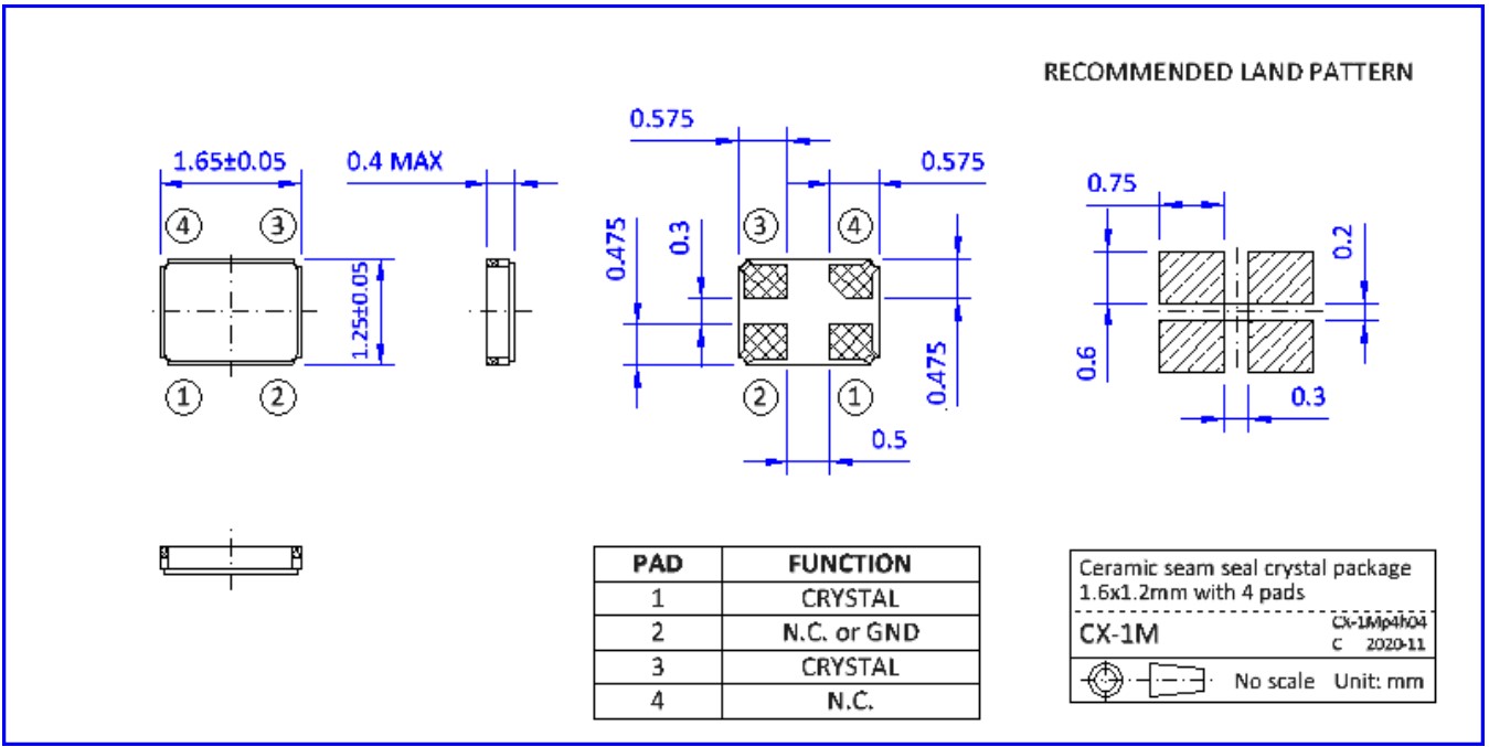 香港NKG無源晶振,S1M28.0000F18E23-EXT,便攜式設(shè)備6G晶振,S1M50.0000T18M25-EXT,超小型晶振,尺寸圖