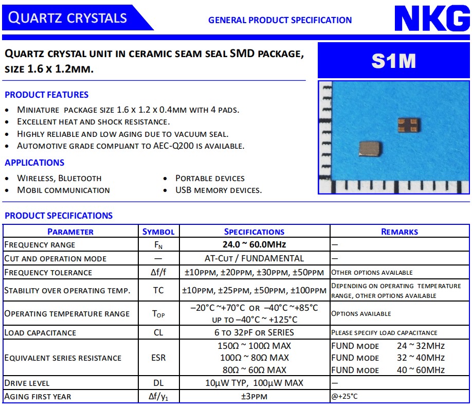 香港NKG無源晶振,S1M28.0000F18E23-EXT,便攜式設(shè)備6G晶振,S1M50.0000T18M25-EXT,超小型晶振,參數(shù)表