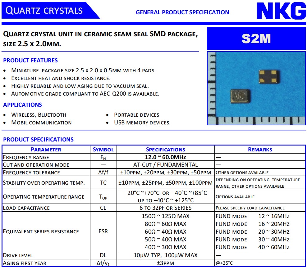 S2M16.0000T18E23-EXT,NKG諧振器,6G無線網(wǎng)絡(luò)晶振,S2M20.0000T18F2Y-EXT,石英貼片晶振,參數(shù)表