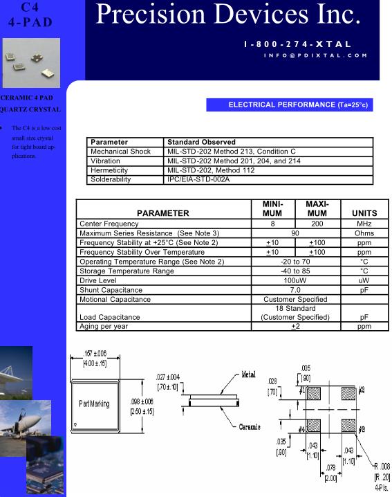 PDI晶振所制造的頻率控制設備使用在軍事,工業,醫學,航空電子設備和商業的市場。PDI在1989年已經是頻率控制設備的主要供貨商,主要供應溫補晶振,SMD晶振,石英晶體振蕩器等元件.PDI晶振,C4晶振,高品質晶振.