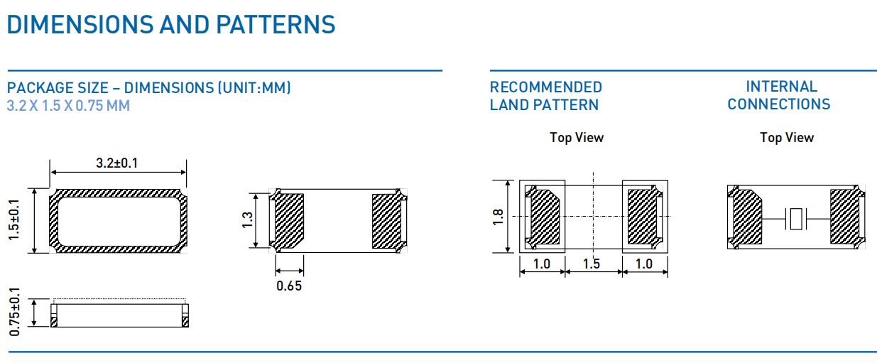 3215mm,M3215HT-32.768kHz-±20ppm-12.5pF,PETERMANN時(shí)鐘晶振,音叉晶體,無(wú)線應(yīng)用晶振,尺寸圖