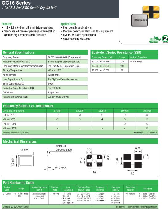 General Specifications-QANTEK晶振 | QC16晶振 |