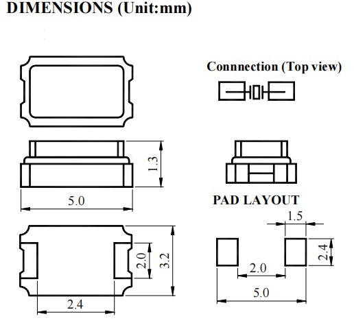 QCM20-21AF18-48.000MHz,5032mm,48M,QVS無源晶振,QCM20,兩腳貼片晶振,尺寸圖