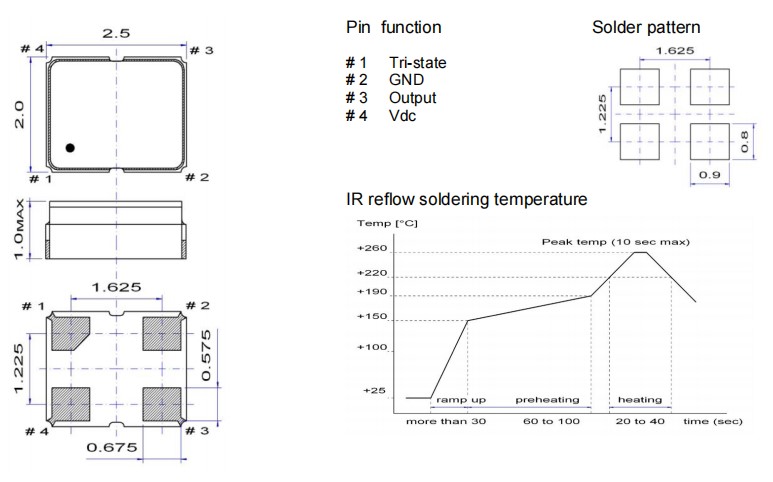MCO-6S3P,2520mm,QuartzCom石英通晶振,+3.3V,CMOS輸出振蕩器,可編程寬頻晶振,尺寸圖