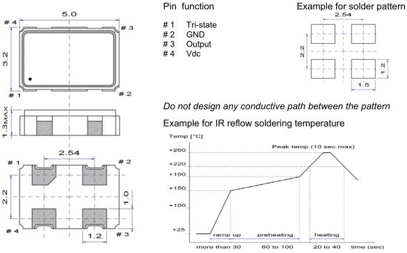 Standard frequencies | 32.768 kHz, 11.0592, 20, 25, 40, 44, 106.25, 125 MHz | on request | ||