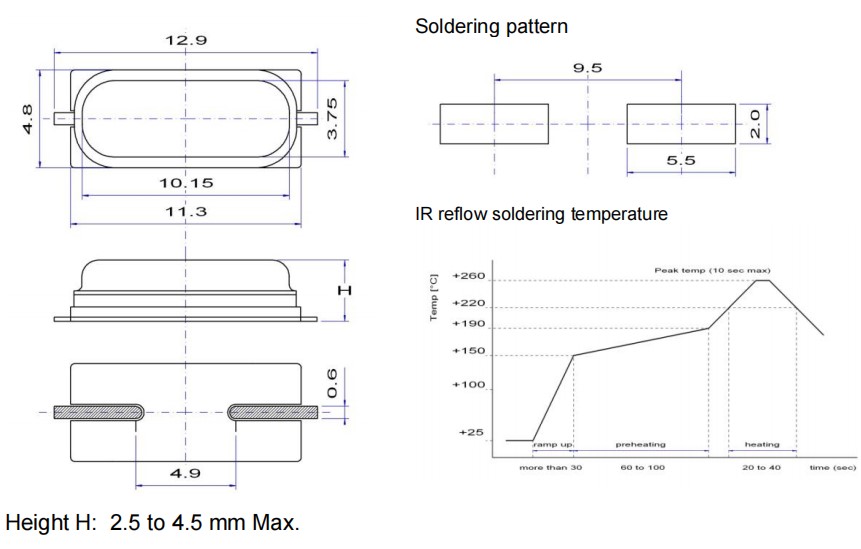 外形尺寸:12.9x4.8mm石英晶體諧振器