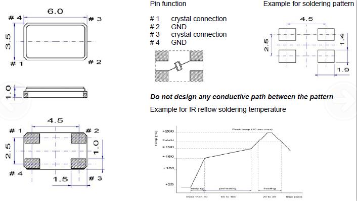 在一個不同擴張系數電路板(環氧玻璃)上焊接陶瓷封裝石英晶振時,在溫度長時間重復變化時可能導致端子焊接部分發生斷裂,請事先檢查焊接特性。QuartzCom晶振,SMX-2S晶振,導航專用晶振.