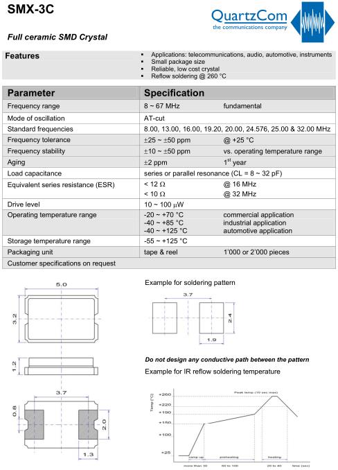Standard frequencies | 8.00, 13.00, 16.00, 19.20, 20.00, 24.576, 25.00 & 32.00 MHz |
