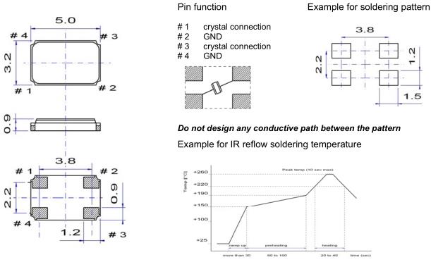 (1) 在更高或更低溫度或高濕度環境下長時間保存晶振時,會影響頻率穩定性或焊接性。請在正常溫度和濕度環境下保存這些石英晶振產品,并在開封后盡可能進行安裝,以免長期儲藏。