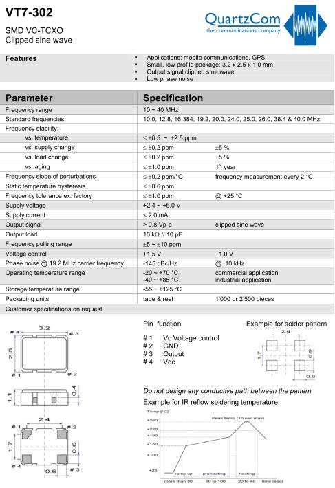 Standard frequencies | 10.0, 12.8, 16.384, 19.2, 20.0, 24.0, 25.0, 26.0, 38.4 & 40.0 MHz |