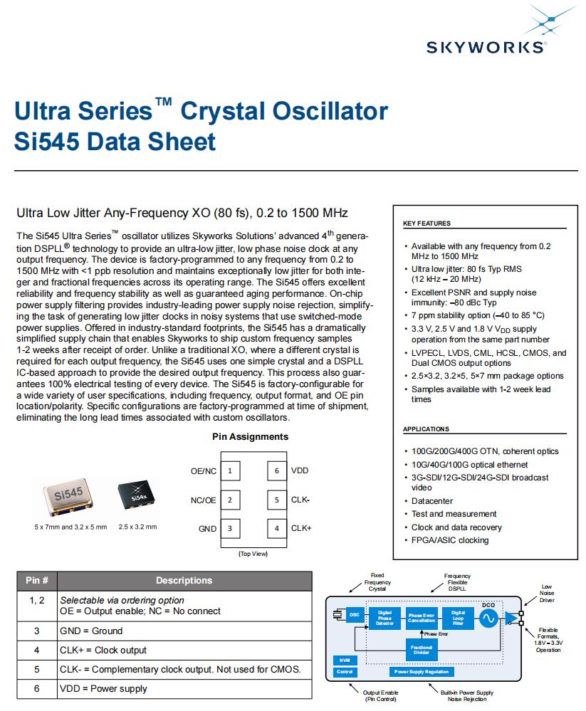 Skyworks差分晶體振蕩器,545BAB122M880ABGR,Si545數(shù)據(jù)中心應(yīng)用晶振