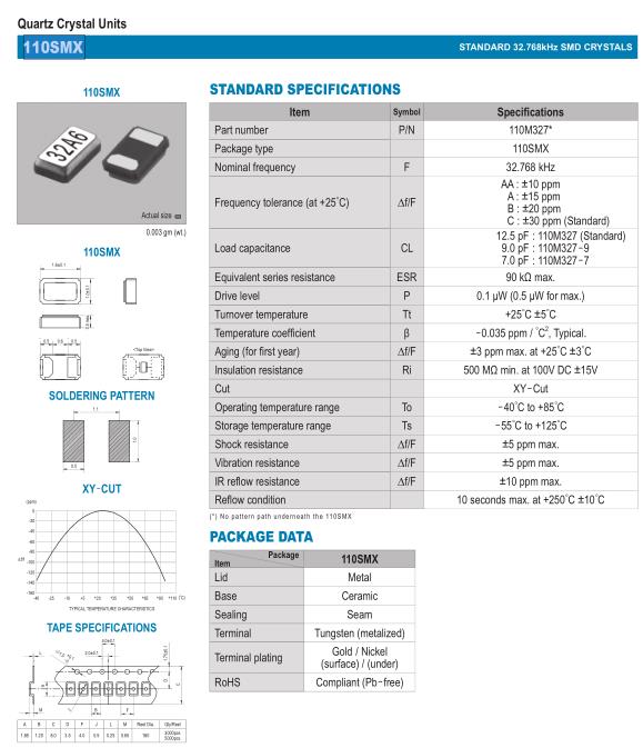 SMI晶振,110SMX晶振,高性能晶振,32.768K時鐘晶體具有小型,薄型,輕型的貼片晶振表面音叉型晶體振蕩器,產(chǎn)品具有優(yōu)良的耐熱性,耐環(huán)境特性,可發(fā)揮晶振優(yōu)良的電氣特性,符合RoHS規(guī)定,滿足無鉛焊接的高溫回流溫度曲線要求,金屬外殼的封裝使得產(chǎn)品在封裝時能發(fā)揮比陶瓷振蕩器外殼更好的耐沖擊性.