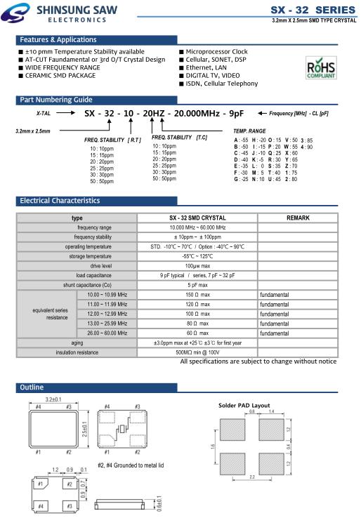 type | SX - 32 SMD CRYSTAL | REMARK | |