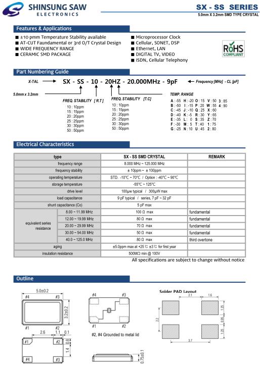 SHNSUNG Crystal成立于1999年,中文新松晶振,主要研發生產銷售石英晶振,OSC振蕩器,TCXO振蕩器,有源晶振等頻率元件,并確保每一顆晶振完美程度,以高質量,高穩定性的產品,吸引了無數懂行道的名家關注.Shinsung晶振,SX-SS晶振,SX-SS-10-20HZ-26.000MHz-7pF晶振.