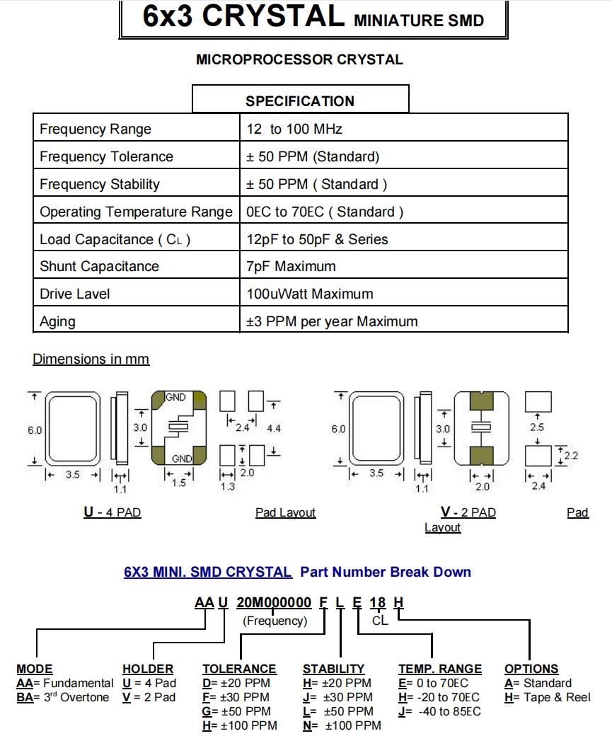 STD四腳貼片晶振\醫療設備6G晶振\AAU60M000000FHE18H 參數表