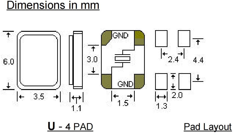 STD四腳貼片晶振\醫療設備6G晶振\AAU60M000000FHE18H 尺寸圖